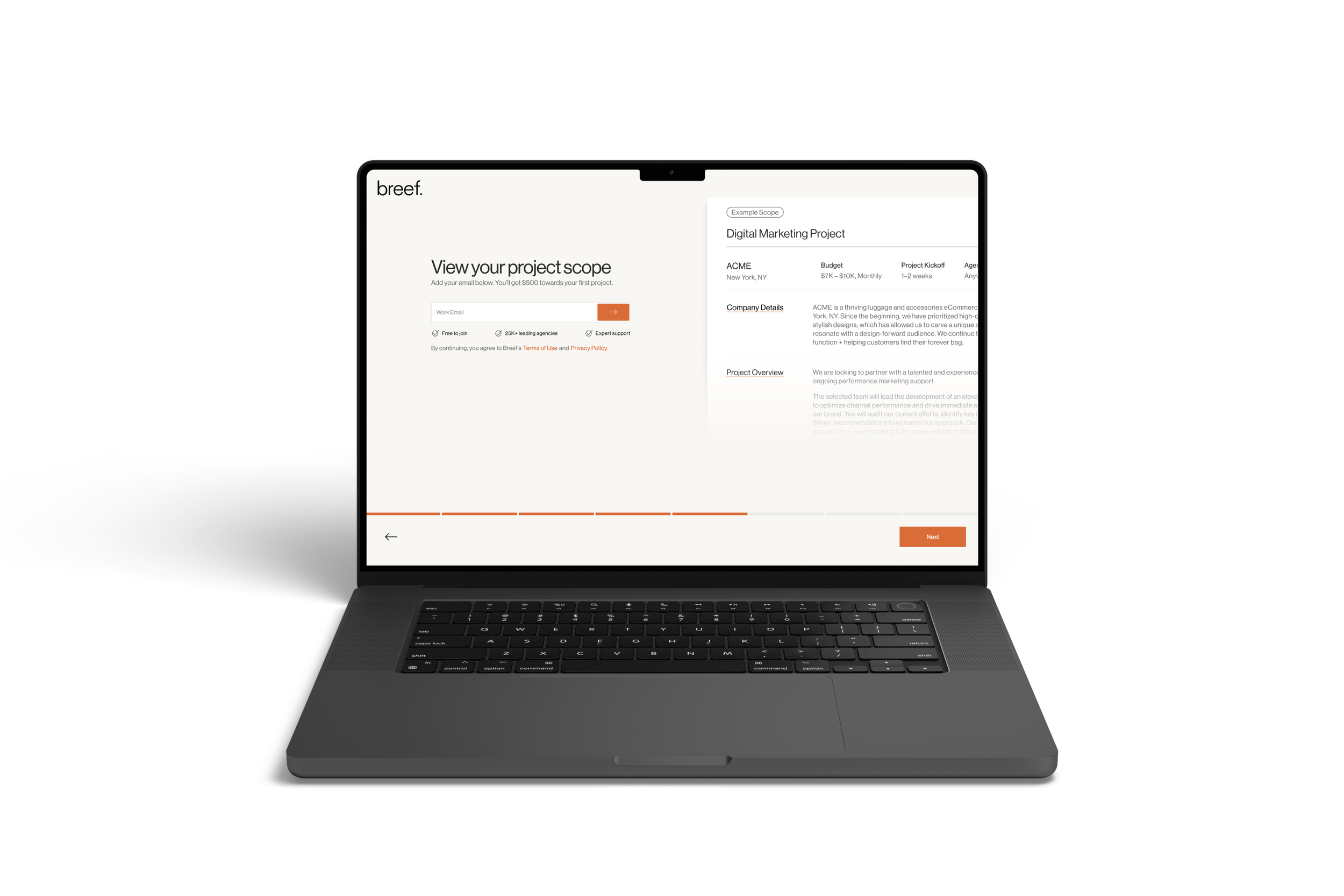 Challenge: Breef was looking for a way to streamline their project creation flow, taking users from the breef.com landing pages directly to a custom-generated project scope in just a few clicks.